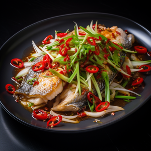 Panfried Seabass with Sizzled Ginger, Chilli and Spring Onions