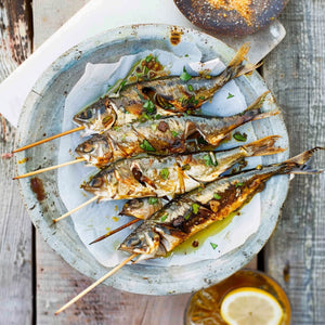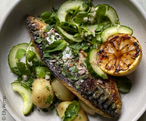 BBQ Mackerel with Pickled Cucumber and Charred Lemon Salad